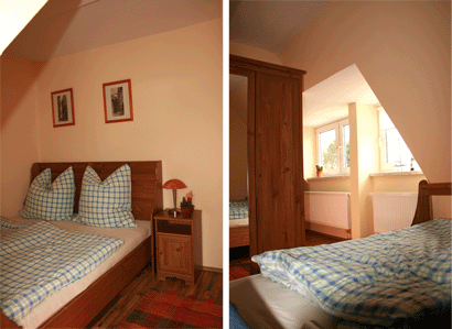 Das gemütliche Schlafzimmer ist ausgestattet mit einem Doppelbett und einem 3-türigen Kleiderschrank mit Spiegel. Zusätzlich ist ein Babyreisebett bis 20 kg mit Matratze vorhanden ( auf Anfrage ).